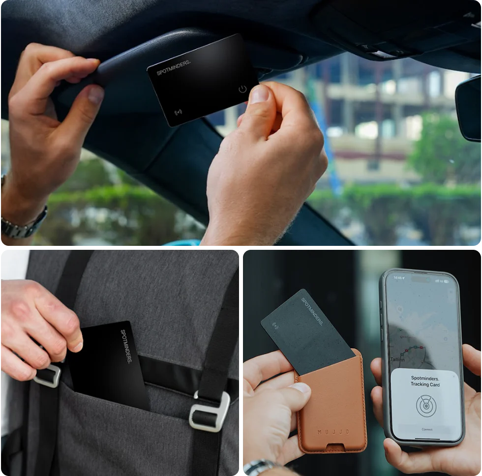 The Spotminders Ultra‑Slim Wallet Tracker is a credit‑card‑sized tracking card that you slip into your wallet, passport sleeve, briefcase, or travel bag. Once configured with your iPhone’s Find My app, it uses Apple’s secure Find My network to show your item’s location so you can: